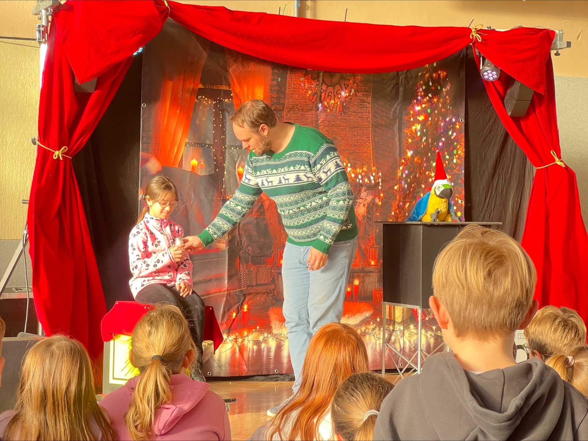 Der Förderverein der Grundschule Eisbergen bedankt sich herzlich für die tolle Teilnahme am Basar und der Teilnahme an der Tombola anlässlich des 30- jährigen Jubiläums. Als besonderes Dankeschön gab es für alle Kinder des Grundschule Eisbergen die Zaubershow " Weihnachen muss gerettet werden", die am letzten Schultag vor den Weihnachtsferien stattfand. Die Kinder waren absolut begeistert vom Zauberer und seinem lustigen Papageien und wir als Kollegium danken allen, die dieses Highlight möglich gemacht haben.